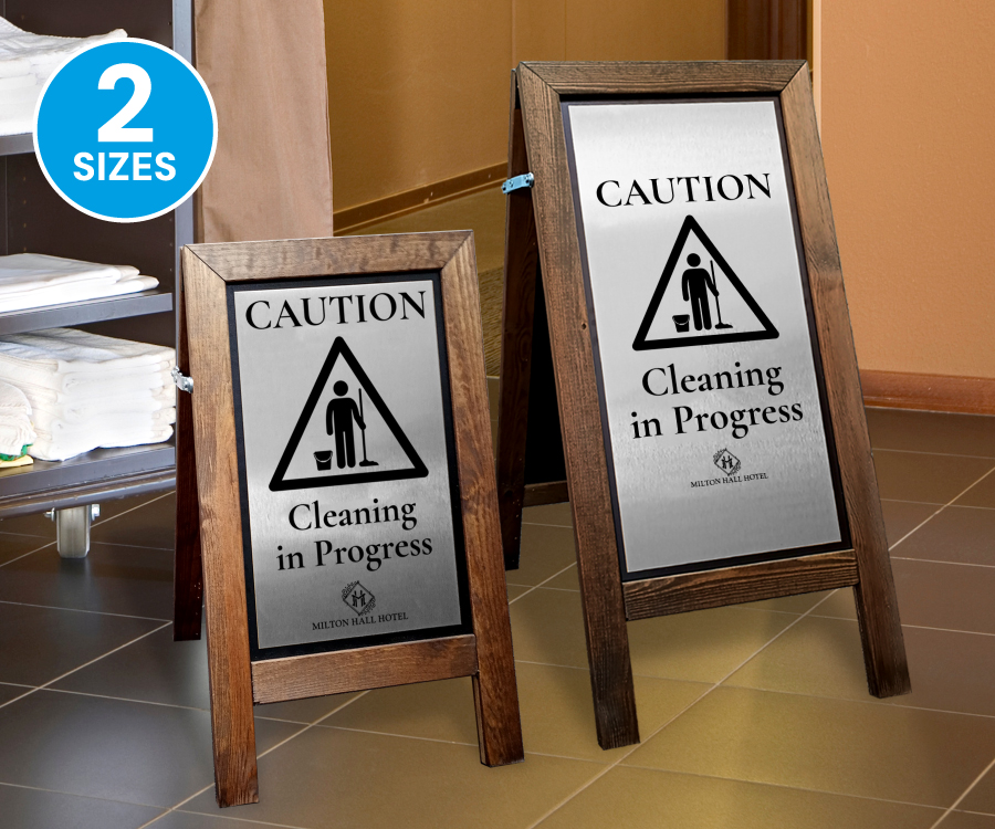 Crafted from high-quality wood with a smooth durable finish, the stand provides excellent stability and longevity. The brushed silver aluminium plate delivers a modern, professional look while ensuring high visibility for the Cleaning in Progress warning. Ideal for hotels, restaurants, retail spaces, offices and upscale venues, this stand blends seamlessly into premium interiors.