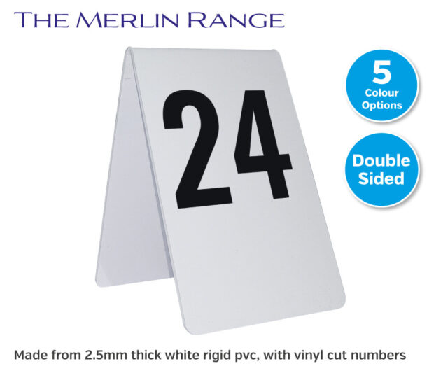 Made from 2.5mm thick white rigid pvc, with vinyl cut numbers added in a colour of your choice. Our space saving design, allows them to be stacked neatly and stored away after use. For interior use only.