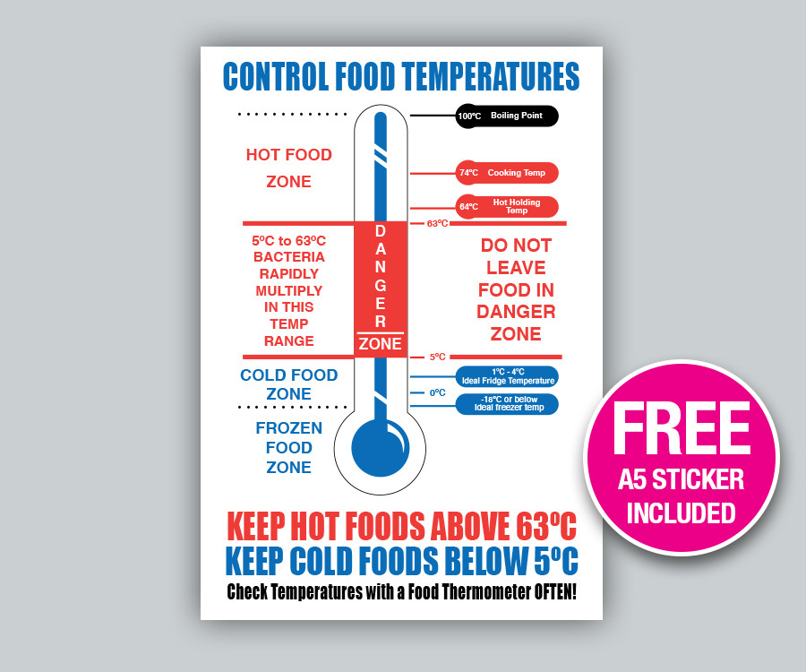 Included within this pack is an A5 Control Food Temperatures Sticker, to assist you while completing the Log Book.