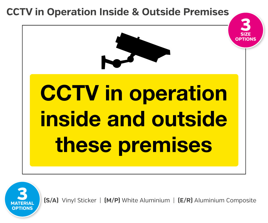 CCTV Security Notice. Wherever possible, you should make sure that staff members, visitors, contractors, and other individuals are informed about the use of CCTV surveillance. The use of appropriate signage within your premises helps get that message across perfectly, this CCTV in-operation sign gives a clear warning that any person caught stealing or causing damage will be prosecuted as part of your security measures.