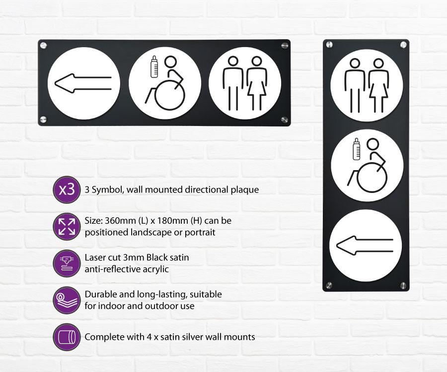 They can be placed directly on to toilet doors or on to a directional plaque as shown in the product images. (Plaques sold separately)